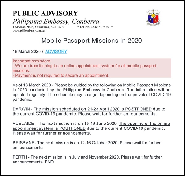 Public Advisory on Consular Mission