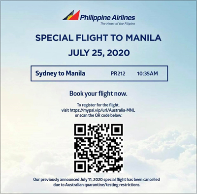 Special Flight to Manila 04 June 2020