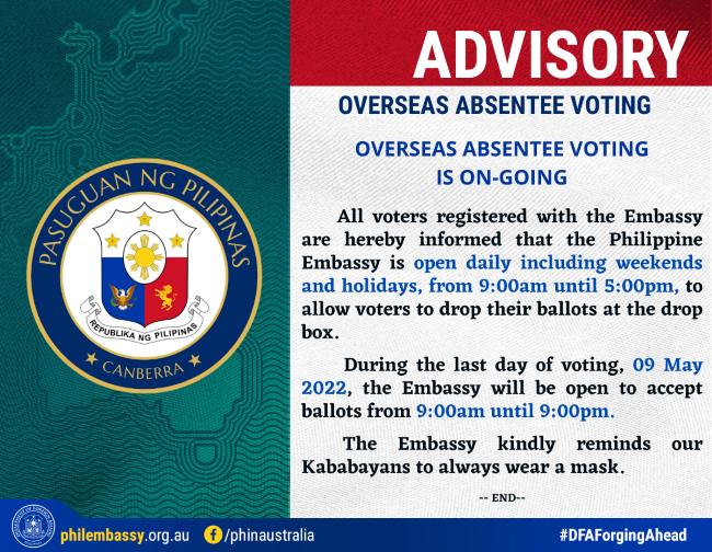 OVERSEAS ABSENTEE VOTING IS ONGOING
