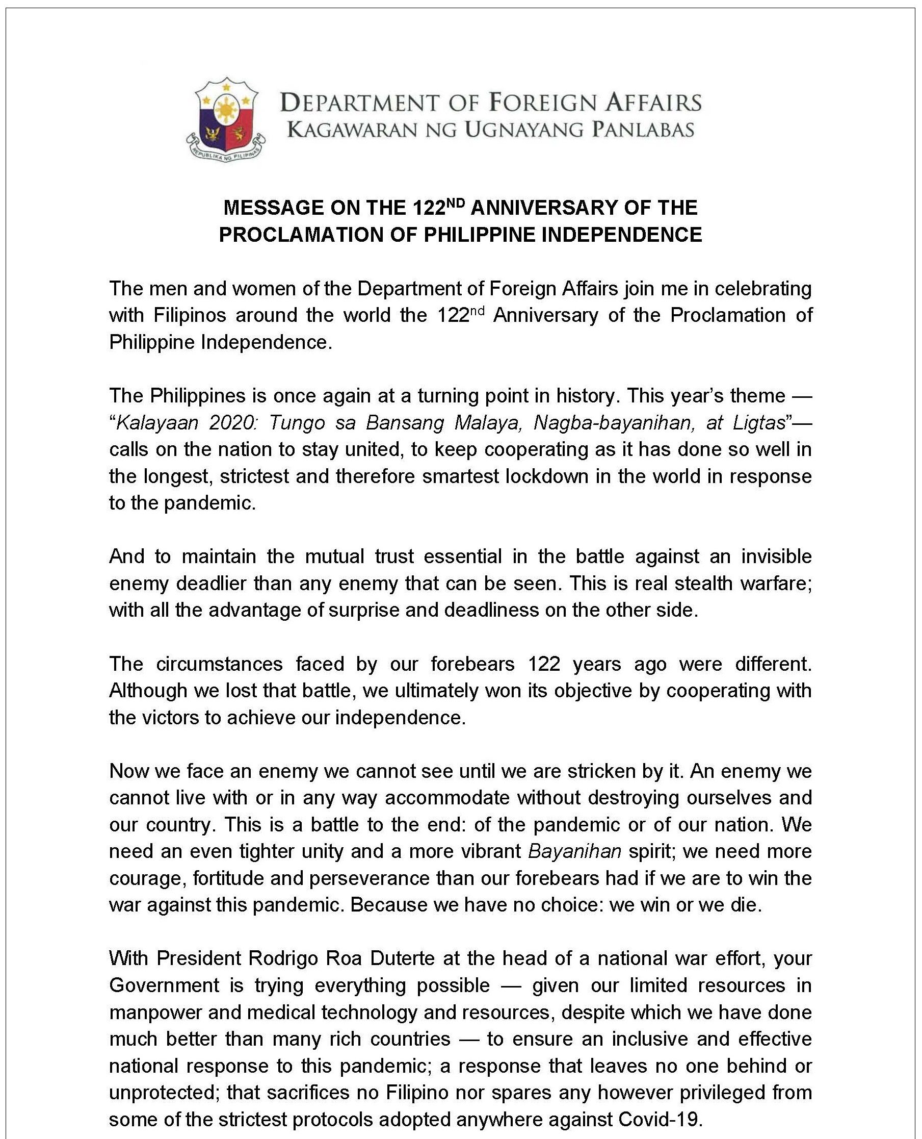 PRRD Independence Day Message 2020 B
